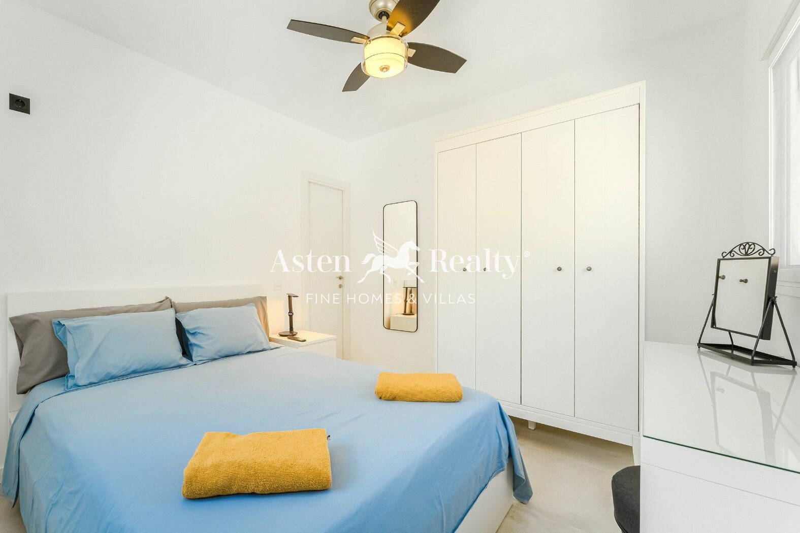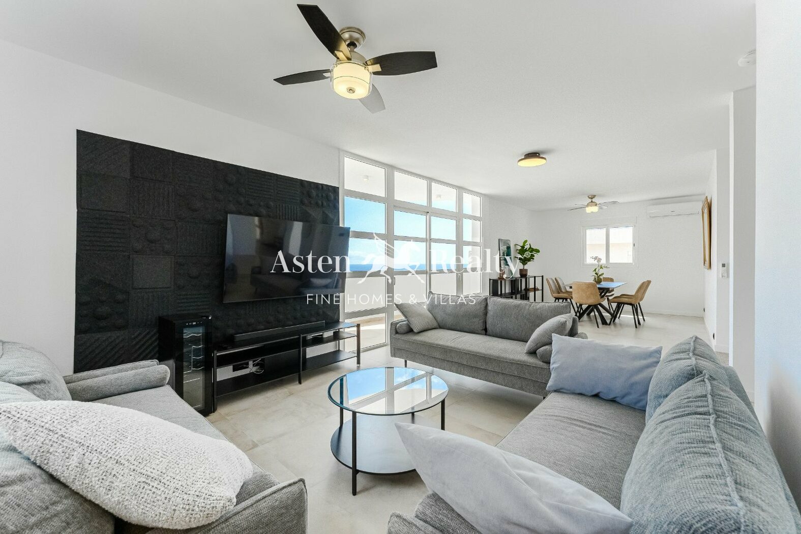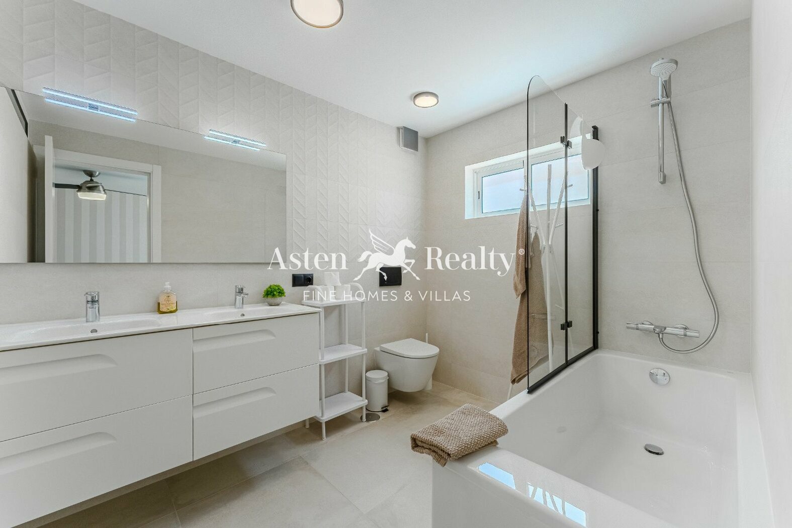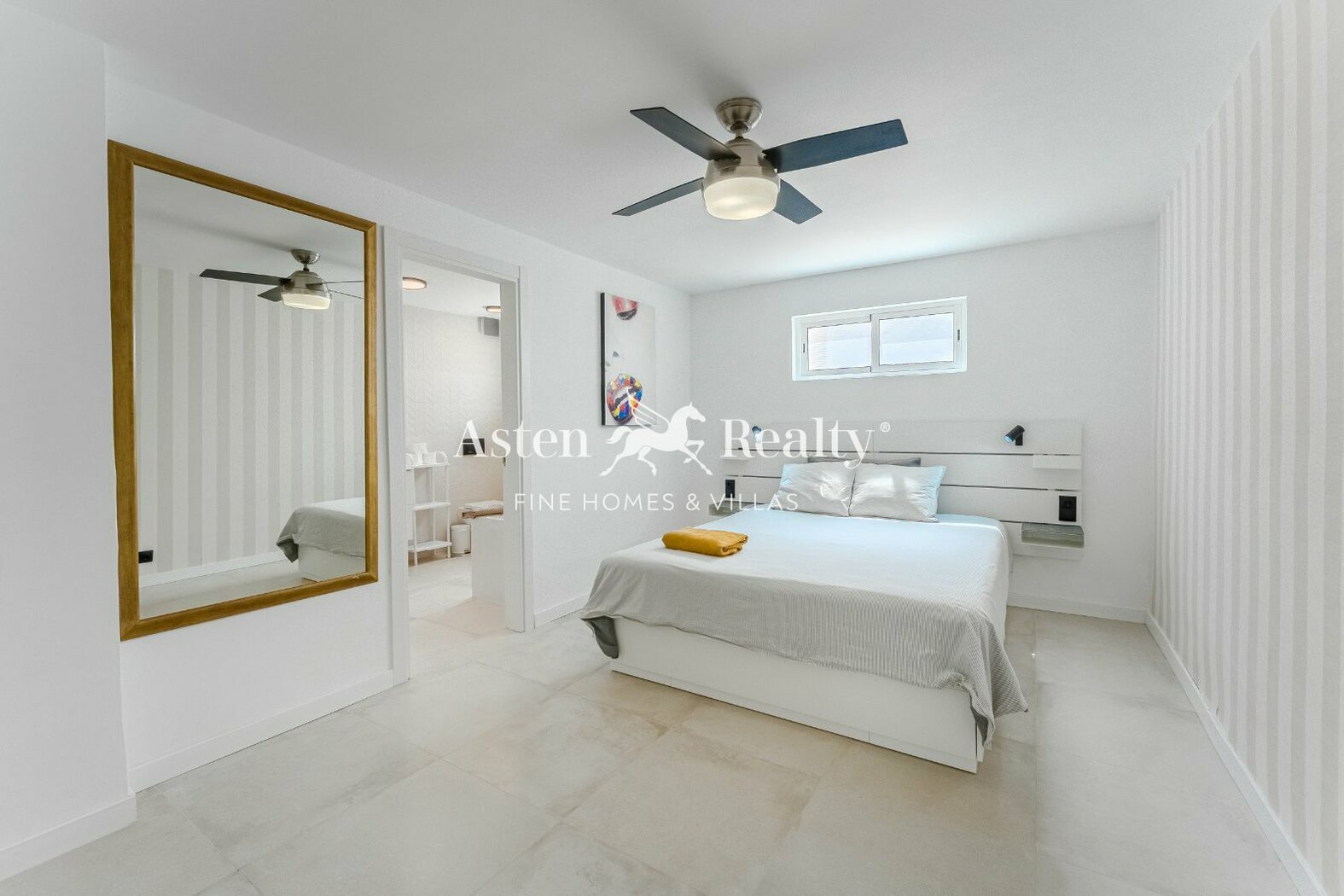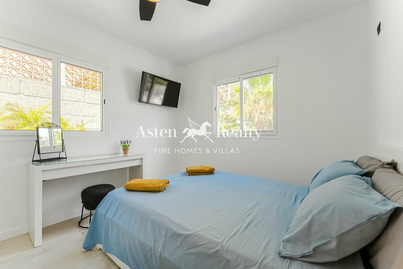 Продаётся: отдельная, полностью отреставрированная вилла с захватывающим видом на океан и побережье Коста-Адехе. Эта недвижимость расположена в одном из самых престижных районов юга Тенерифе, всего в 1 500 метрах пешком от пляжа Эль Бобо и рядом с одними из лучших пляжей острова, включая Плайя-де-Тройя, Плайя-де-лас-Америкас, Плайя-де-Торвискас и Плайя-де-Фаньябе. Поблизости также находятся главные туристические достопримечательности и объекты инфраструктуры, такие как знаменитый аквапарк Siam Park (1 000 м), Aqualand Costa Adeje (800 м), а также два крупных торговых центра: Siam Mall (1 800 м) и X-Sur (750 м).