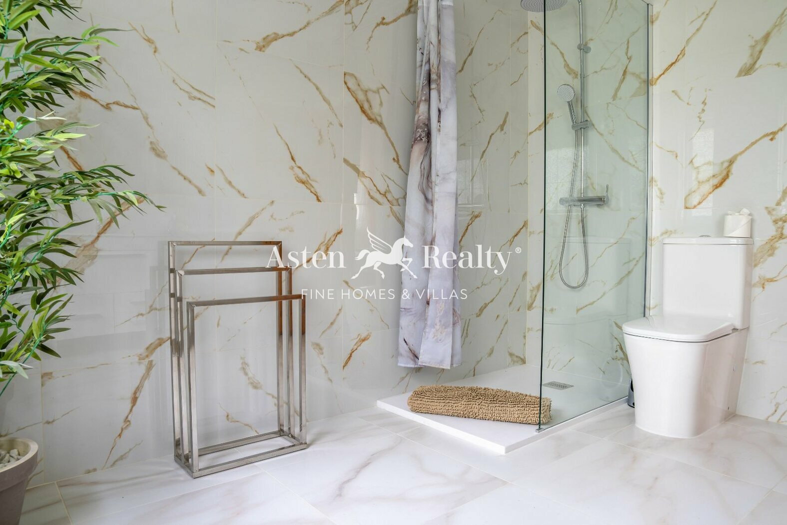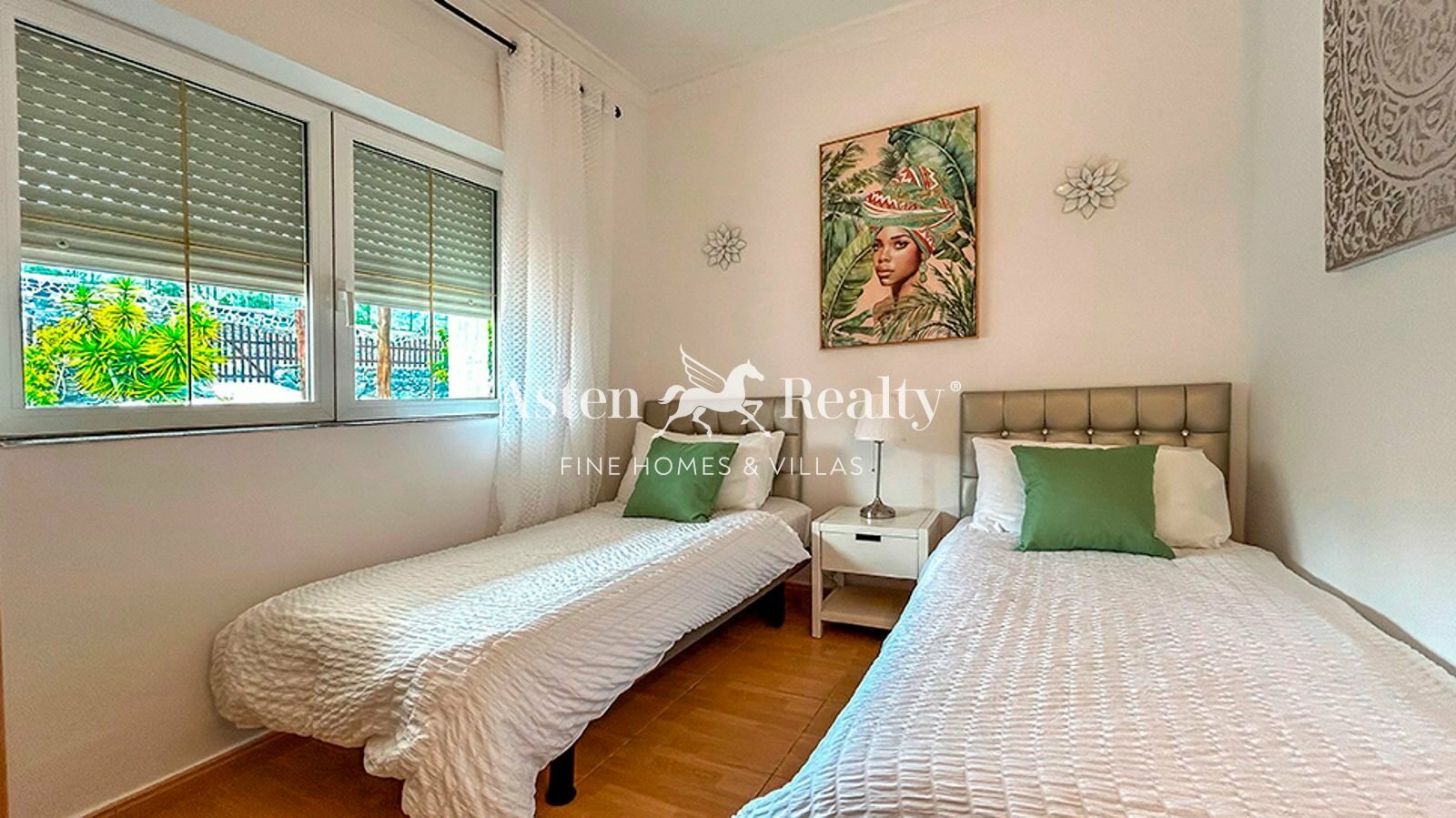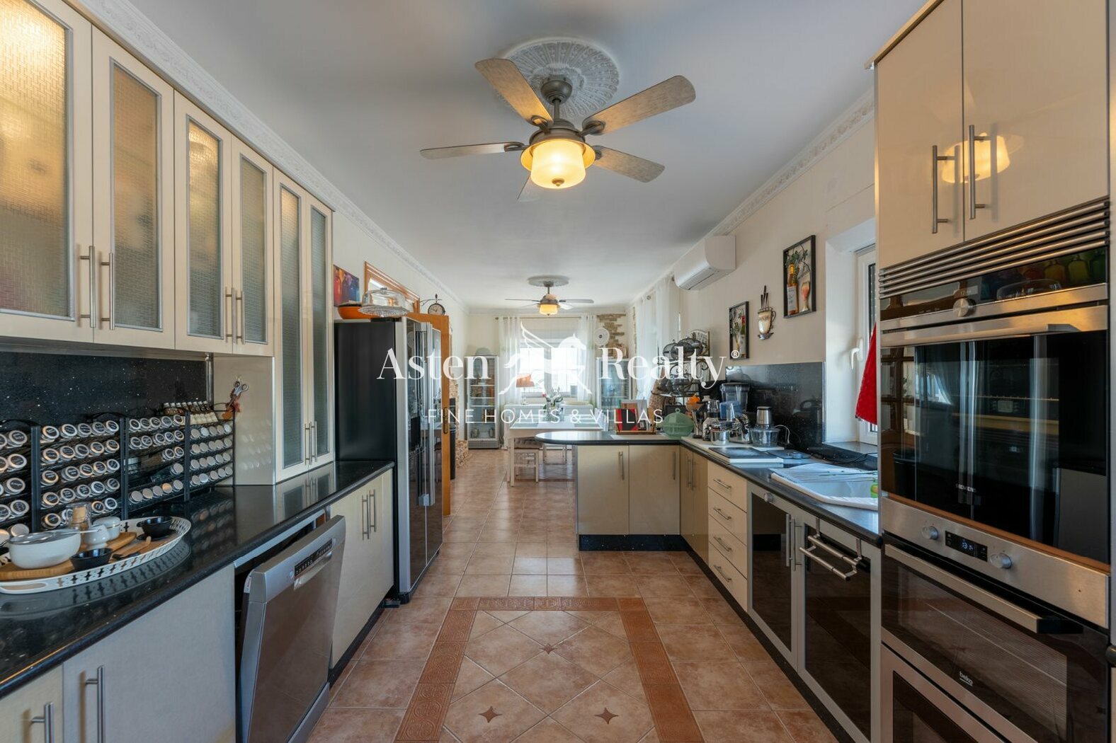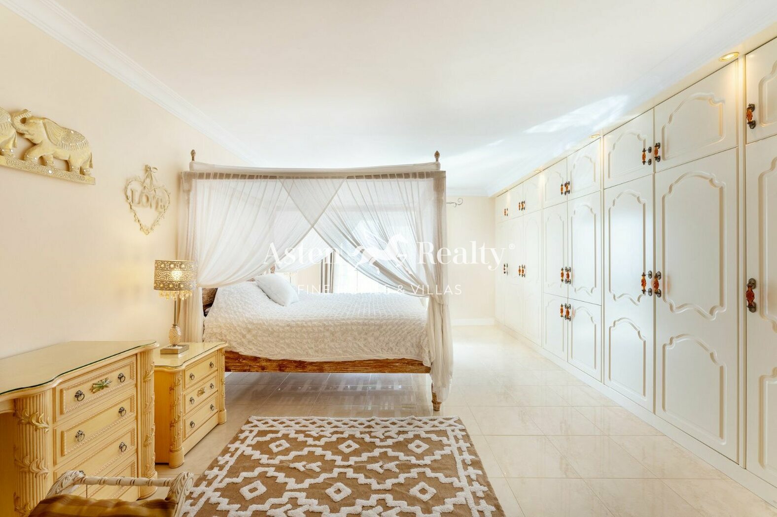 Вилла разделена на две отдельные жилые зоны, каждая из которых имеет выход к великолепным открытым площадкам. На верхнем этаже, занимающем два уровня и в настоящее время используемом для сдачи в аренду на время отпуска, расположены четыре спальни, две из которых с ванными комнатами, дополнительная семейная ванная комната и кондиционер в главной спальне. На первом этаже находятся две просторные семейные апартаменты, каждая с двумя спальнями и ванными комнатами, а также гостевой туалет, большая гостиная-столовая, дизайнерская кухня со встроенной обеденной зоной и прачечная с выходом на улицу.
