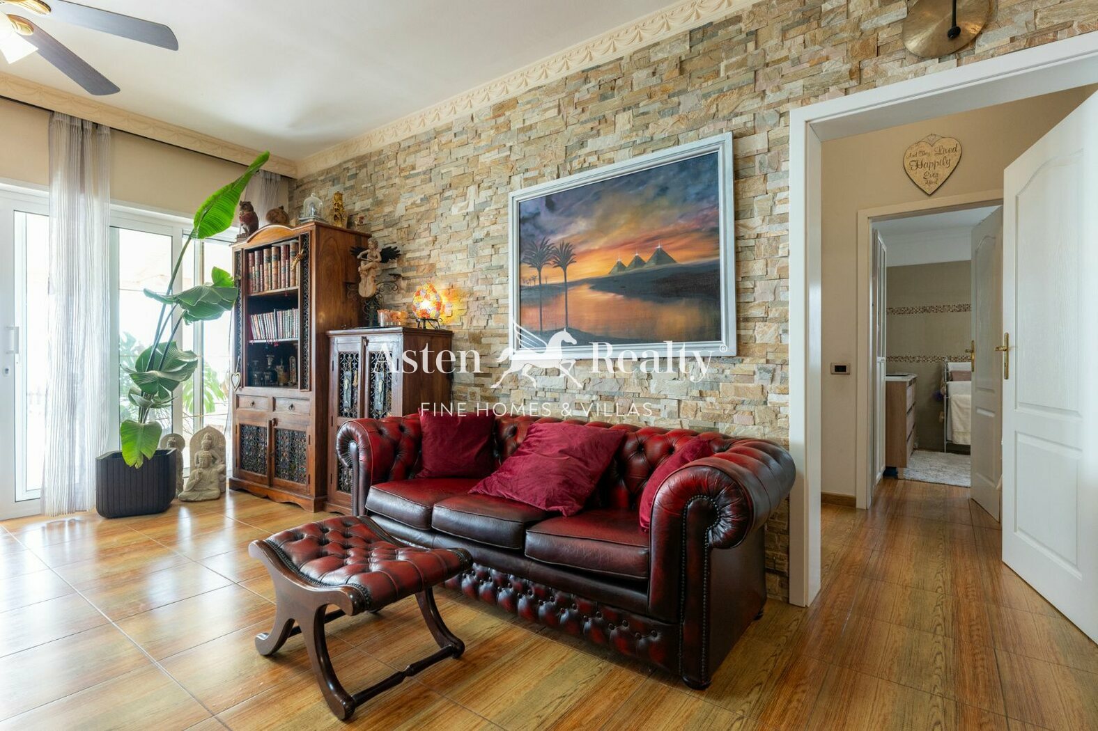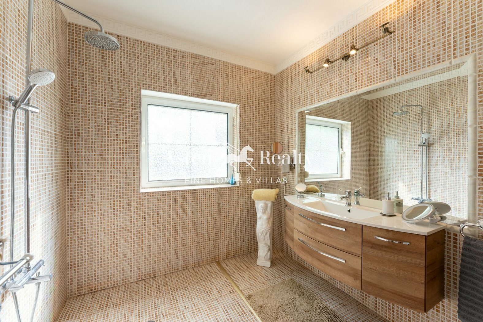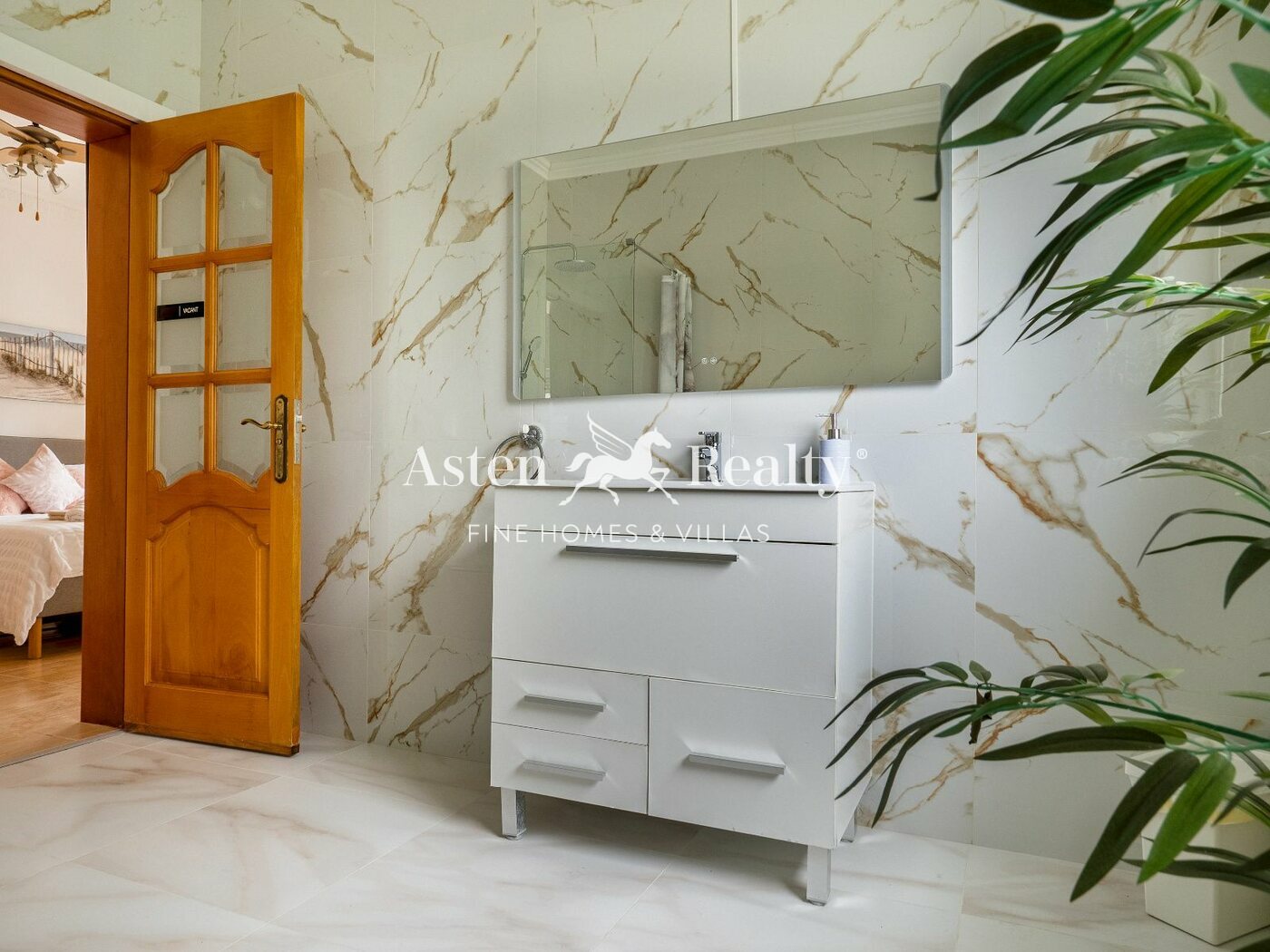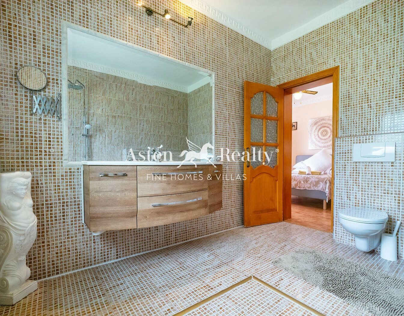 Вилла разделена на две отдельные жилые зоны, каждая из которых имеет выход к великолепным открытым площадкам. На верхнем этаже, занимающем два уровня и в настоящее время используемом для сдачи в аренду на время отпуска, расположены четыре спальни, две из которых с ванными комнатами, дополнительная семейная ванная комната и кондиционер в главной спальне. На первом этаже находятся две просторные семейные апартаменты, каждая с двумя спальнями и ванными комнатами, а также гостевой туалет, большая гостиная-столовая, дизайнерская кухня со встроенной обеденной зоной и прачечная с выходом на улицу.