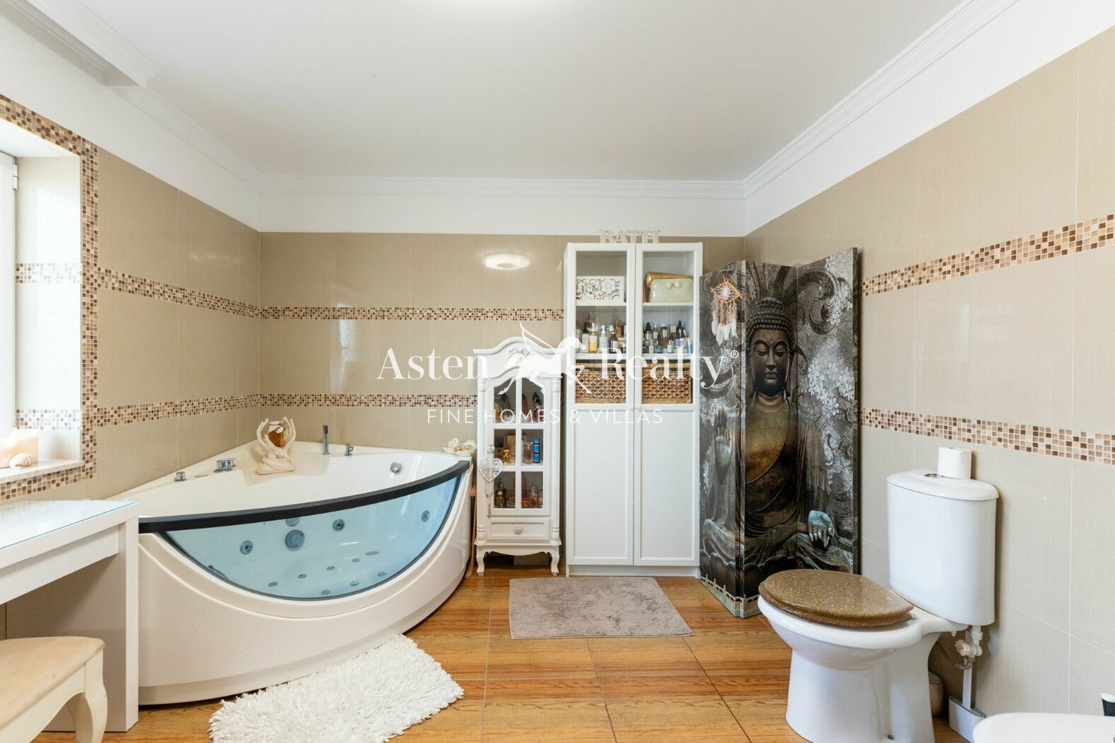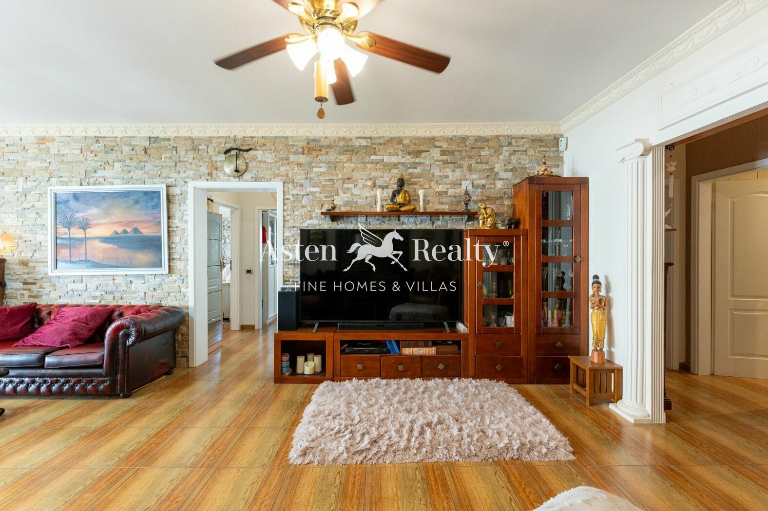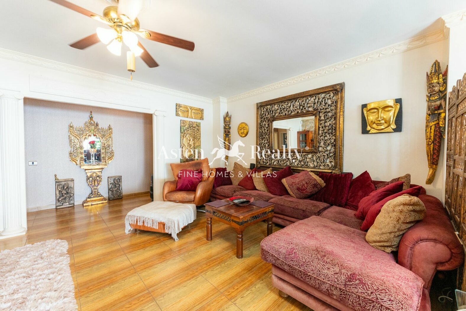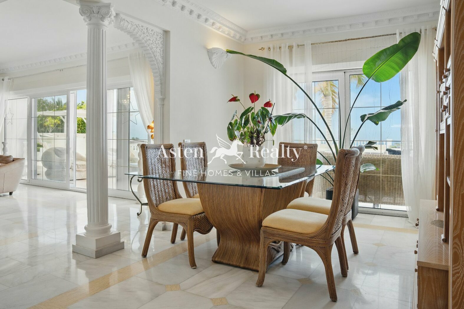 Вилла разделена на две отдельные жилые зоны, каждая из которых имеет выход к великолепным открытым площадкам. На верхнем этаже, занимающем два уровня и в настоящее время используемом для сдачи в аренду на время отпуска, расположены четыре спальни, две из которых с ванными комнатами, дополнительная семейная ванная комната и кондиционер в главной спальне. На первом этаже находятся две просторные семейные апартаменты, каждая с двумя спальнями и ванными комнатами, а также гостевой туалет, большая гостиная-столовая, дизайнерская кухня со встроенной обеденной зоной и прачечная с выходом на улицу.
